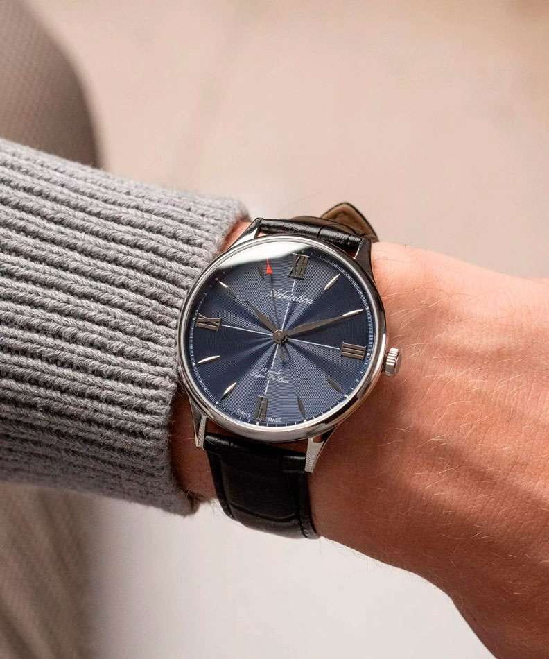 Часы Adriatica A1230.5265MXL представляют собой изысканное сочетание традиционного швейцарского мастерства и современного дизайна. Эти механические часы с калибром Sellita SW210 поражают точностью и надежностью, обеспечивая 42-часовой запас хода. Корпус из нержавеющей стали придает модели элегантный вид и защищает от внешних воздействий. Циферблат синего цвета с гильошированием завораживает своей текстурой, а римские цифры и штрихи добавляют классический акцент. Прозрачная задняя крышка позволяет любоваться сложной работой механизма. Кожаный ремешок с классической застежкой обеспечивает комфортное ношение и подчеркивает стильный внешний вид. Сапфировое стеклоСапфировое стеклоПрочный и надёжный материал из кристалла сапфира синтетического происхождения, характеризующийся особой твёрдостью и устойчивостью к царапинам и повреждениям. надежно защищает циферблат, а водозащита 30 WR делает эти часы практичным выбором для повседневного использования.  Adriatica A1230.5265MXL — это не просто аксессуар, а отражение утонченного вкуса и внимания к деталям, которое станет достойным дополнением к любому образу.