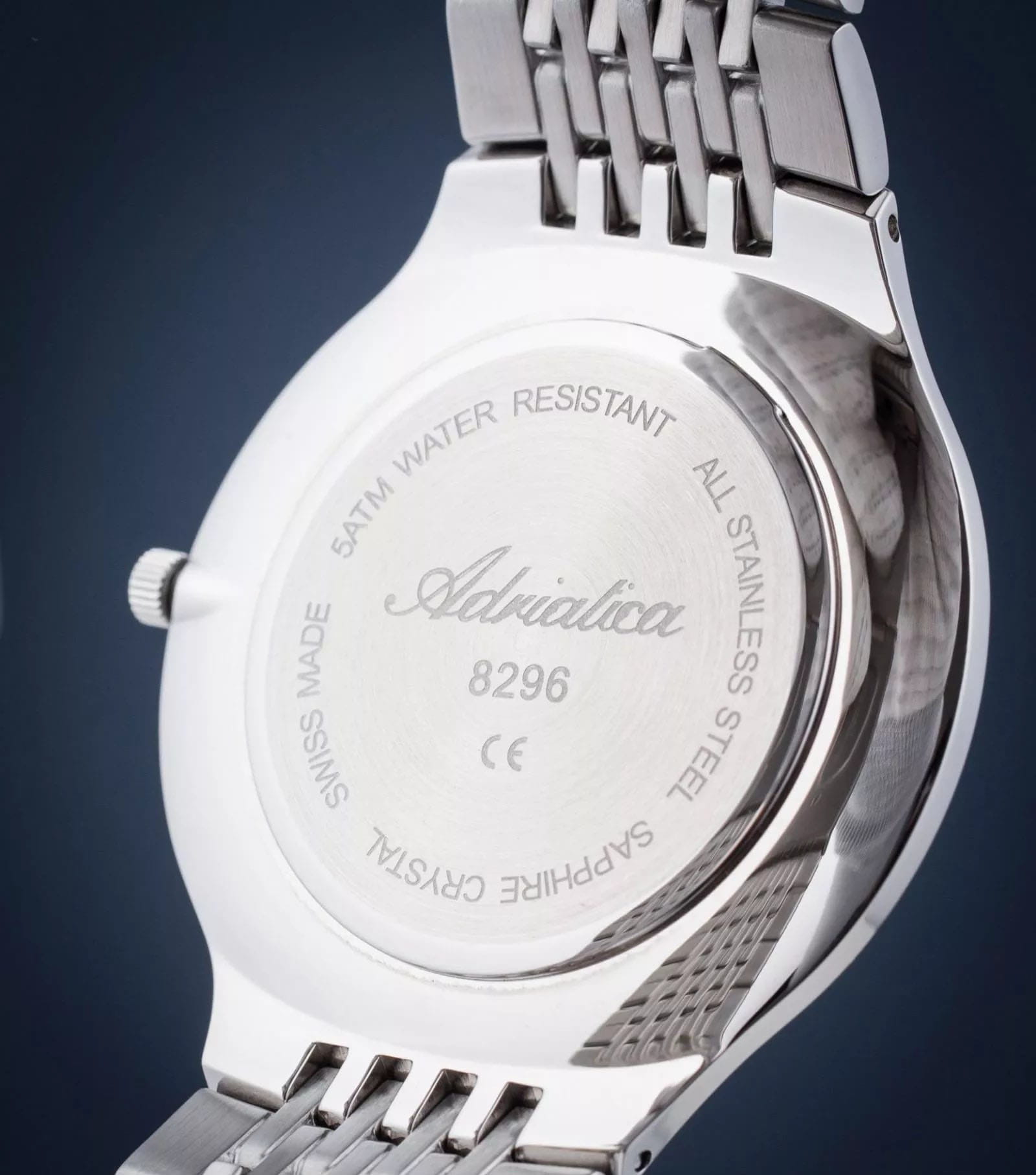 Мужские швейцарские наручные часы Adriatica Premiere A8296.5157Q, кварцевый механизм с высокой точностью. Сапфировое стеклоСапфировое стеклоПрочный и надёжный материал из кристалла сапфира синтетического происхождения, характеризующийся особой твёрдостью и устойчивостью к царапинам и повреждениям. устойчивое к появлению царапин, обладающее высокой прозрачностью. Класс водозащиты: 50 метров, позволит защитить корпус от случайных брызг или капель дождя. Корпус часов изготовлен из стали. Стальной браслет на раскладной застёжкеРаскладная застёжкаТакой тип застёжки используется только на браслетах из металла. Она никогда не раскрывается полностью, происходит разделение на 2 и более частей. Раскладывающая застёжка снизит вероятность потери часов к минимуму..
