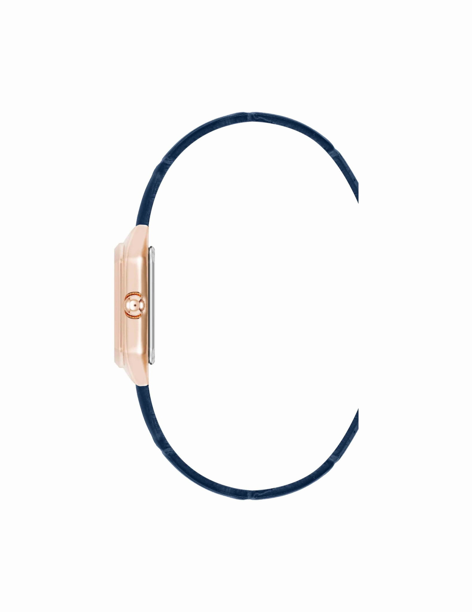 Женские кварцевые часы Anne Klein Consider It 5148NVNV представляют собой экологичный аксессуар с восьмиугольным корпусом 20.5 мм из металла с золотым покрытием. Модель оснащена кварцевым механизмом японского производства с точностью хода ±20 секунд в месяц и темно-синим циферблатом с золотистыми стрелками и метками. Защитное минеральное стеклоМинеральное стеклоМинеральное стекло представляет собой искусственно выращенный минерал кварца. Такое стекло отличается особой устойчивостью к повреждениям и царапинам. Уступает по некоторым качествам сапфировому стеклу. устойчиво к царапинам, а водонепроницаемость 30 метров обеспечивает защиту от брызг. Ремешок из экологичной кожи синего цвета с текстурой "крокодил" изготовлен из сертифицированной Leather Working Group кожи, что подтверждает ответственное производство. Устойчивый дизайн сочетает классическую форму с современными экологичными материалами, подчеркивая приверженность бренда ответственному производству.
