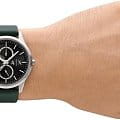 Armani Exchange Dante AX1883 — это стильные часы, которые станут отличным дополнением к вашему образу. Они оснащены надежным кварцевым механизмом и имеют корпус из высококачественной нержавеющей стали. Черный циферблат украшен метками в виде штрихов, придавая часам современный и утонченный вид. Минеральное стеклоМинеральное стеклоМинеральное стекло представляет собой искусственно выращенный минерал кварца. Такое стекло отличается особой устойчивостью к повреждениям и царапинам. Уступает по некоторым качествам сапфировому стеклу. обеспечивает надежную защиту от царапин. функциональность. Функциональность часов на высоте: они показывают время в 12-ти и 24-х часовом формате и оснащены удобными индикаторами даты и дня недели на отдельных циферблатах. Ремешок из кожи темно-зеленого цвета, дополнен стандартной классической застежкой для комфортного ношения. Часы обладают водозащитой 50WR, что делает их подходящими для повседневного использования.