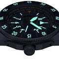 Циферблат отличается детальной функциональностью: в центре — крупные арабские цифры и стрелки, покрытые люминесцентным покрытиемЛюминесцентное покрытиеПозволяет считывать показания времени в темноте. Производители наносят на стрелки, часовые индексы, безель или поверхность циферблата светонакопительный состав, дающий холодное свечение., обеспечивающими мгновенное считывание времени даже в темноте. На «3 часах» — окошко даты, а индикатор второго часового пояса (GMT) удобно расположен на «9 часах». С внешней стороны — вращающийся безельБезельВнешний ободок, закрепляющий стекло. В спортивных часах так называется поворотное кольцо с делениями на циферблате, выполняет роль таймера – замеряет отрезки времени на шкале. Неподвижный безель – элемент декора. Однонаправленно вращающийся безель на дайверских часах позволяет фиксировать моменты погружения и выныривания на поверхность. с PVD-покрытиемPVDУльтратонкое покрытие наносится в технике вакуумного напыления, сочетает в себе нитрид титана особой прочности со слоем золота или оксида хрома. Несёт в себе декоративную или защитную функцию. с насечкой и градусной шкалой для секунд — идеален для расчёта времени пути или времени прибытия .