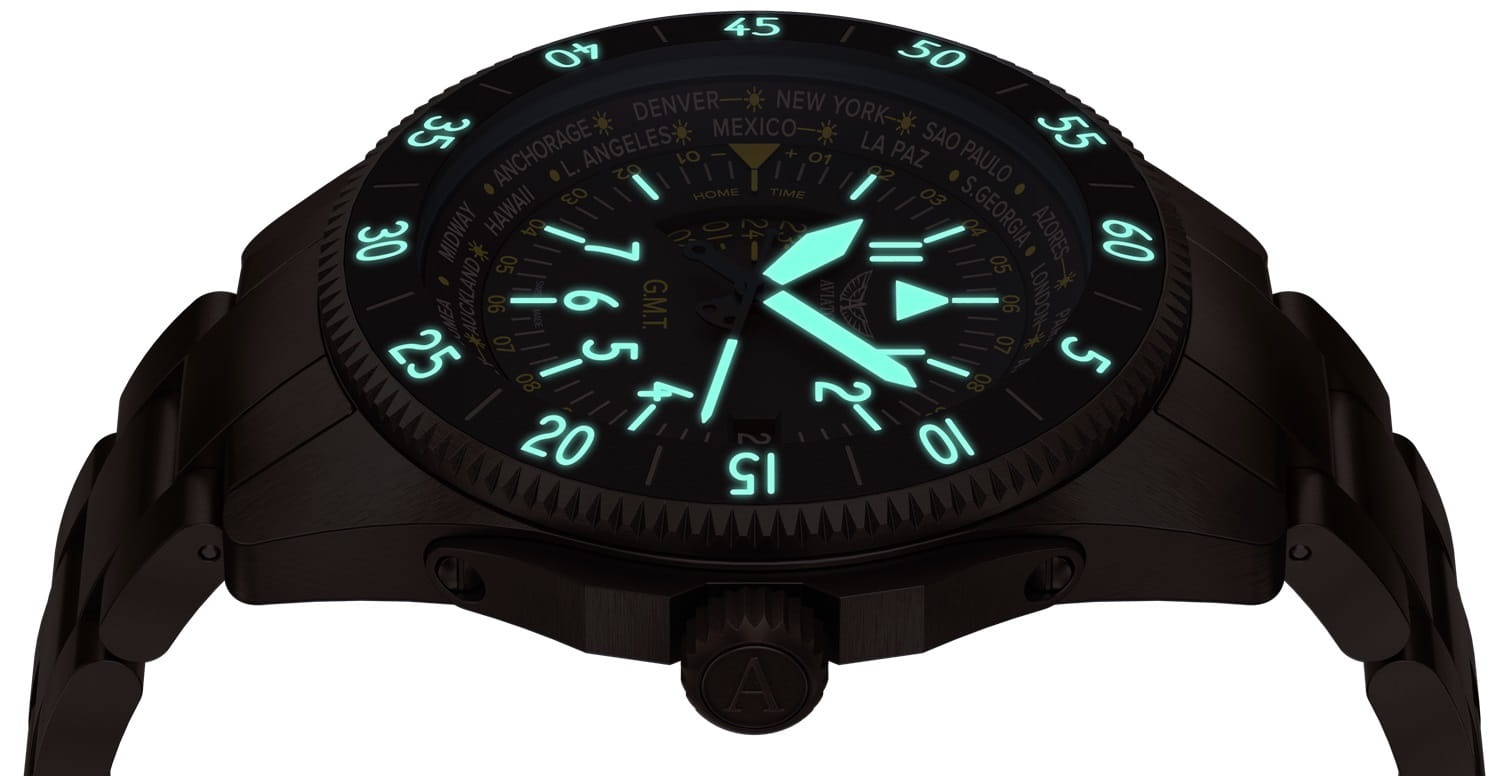 Airacobra GMT — инструментальное сочетание часовой точности, удобной функциональности GMT и авиационной эстетики, предназначенное для тех, кто ценит практичность и стиль в равной мере.