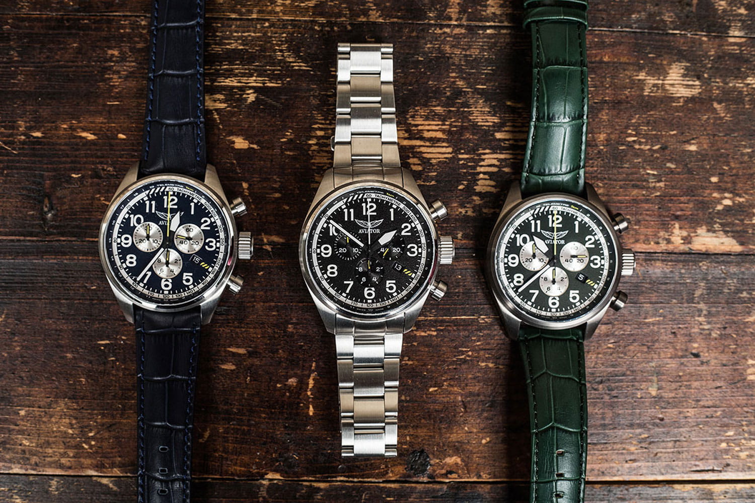 Aviator Airacobra V.2.25.0.169.5 — швейцарский GMT-хронограф в духе пилотских инструментов, объединяющий точность, удобство и лаконичный дизайн. Диаметр корпуса — 45 мм, выполнен из нержавеющей стали, что подчёркивает техническую надёжность в образе часов.