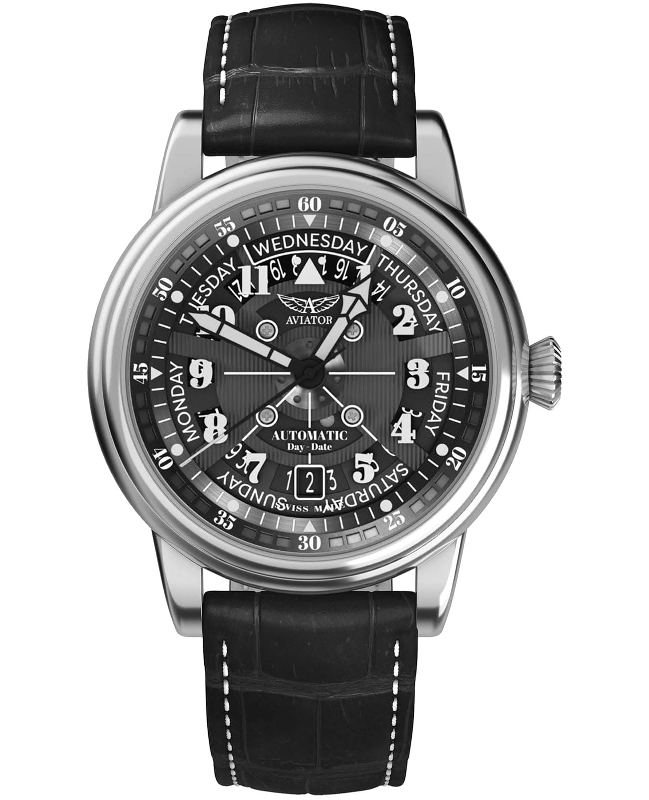 Швейцарские мужские механические часы Aviator Douglas Day Date V.3.36.0.284.4