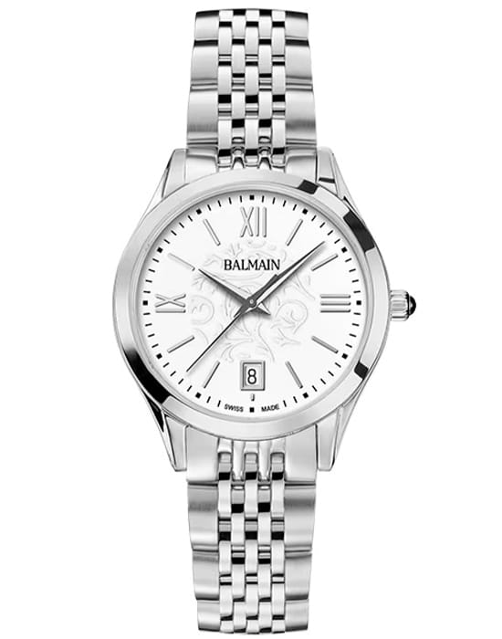 Женские часы Balmain Classic R B4311.31.12 кварцевый механизм с высокой точностью. Сапфировое стеклоСапфировое стеклоПрочный и надёжный материал из кристалла сапфира синтетического происхождения, характеризующийся особой твёрдостью и устойчивостью к царапинам и повреждениям. устойчивое к появлению царапин, обладающее высокой прозрачностью. Корпус изготовлен из нержавеющей стали. Класс водозащиты: 50 метров, позволит защитить корпус от случайных брызг или капель дождя. Стальной браслет на застёжке «бабочка» с кнопкамиЗастёжка "бабочка"Такой вид застёжки дополняется предохранителями, помогающими избежать случайного раскрытия браслета. Обладают изящным исполнением. . Окошко даты находится в положении 6 часов.