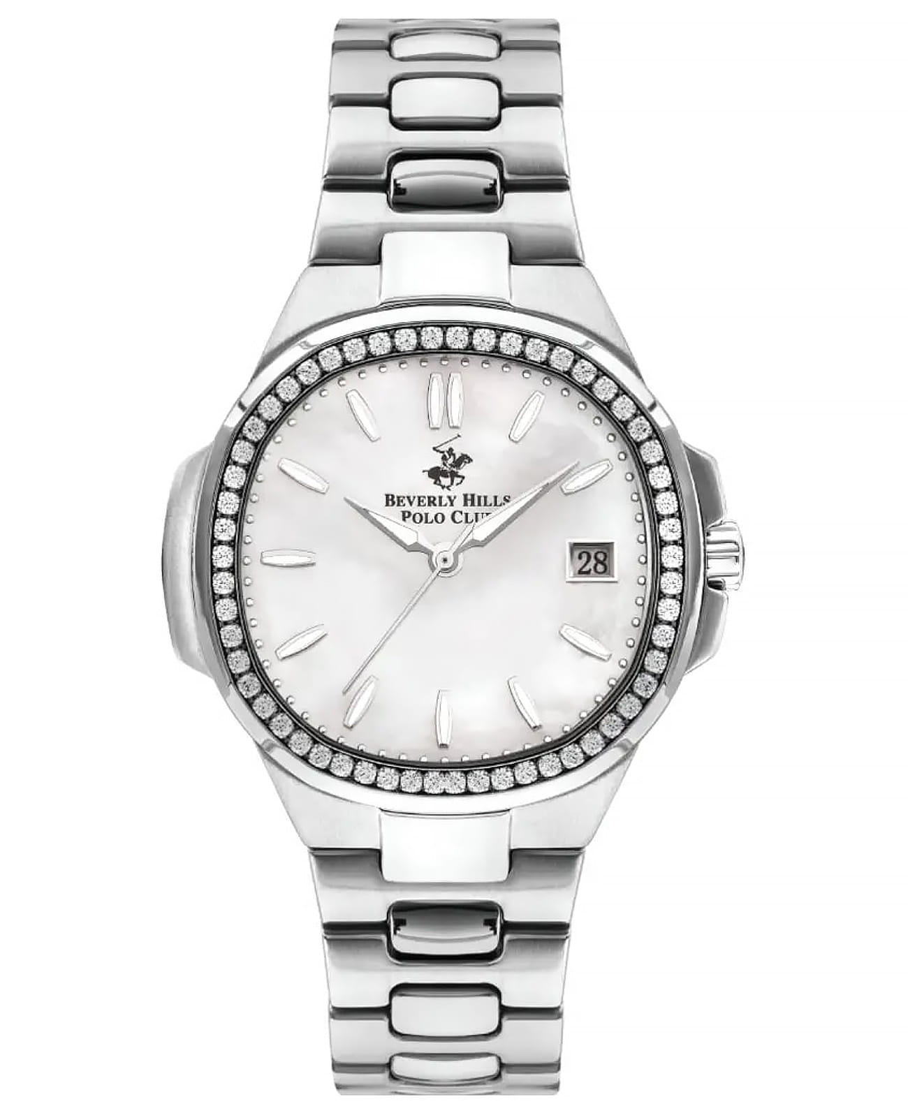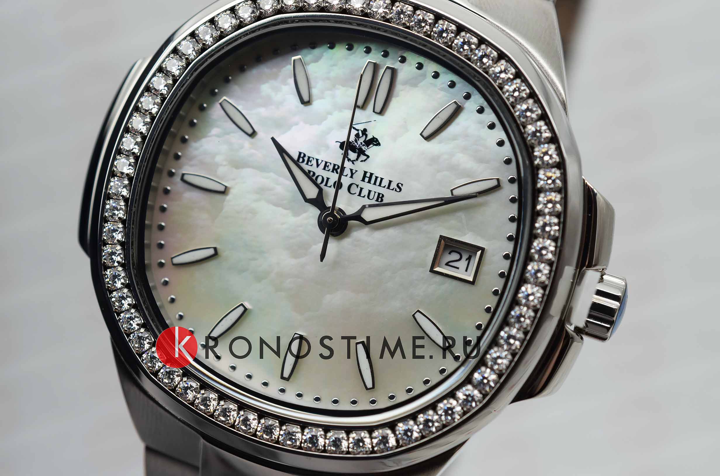 Американские женские часы Beverly Hills Polo Club BP3320X.320 с минеральным стекломМинеральное стеклоМинеральное стекло представляет собой искусственно выращенный минерал кварца. Такое стекло отличается особой устойчивостью к повреждениям и царапинам. Уступает по некоторым качествам сапфировому стеклу., кварцевый механизм с высокой точностью. Безель украшен кристаллами. Класс водозащиты: 30 метров, позволит защитить корпус от случайных брызг или капель дождя. Корпус и браслет часов изготовлены из металла. Браслет с раскладной застёжкойРаскладная застёжкаТакой тип застёжки используется только на браслетах из металла. Она никогда не раскрывается полностью, происходит разделение на 2 и более частей. Раскладывающая застёжка снизит вероятность потери часов к минимуму..