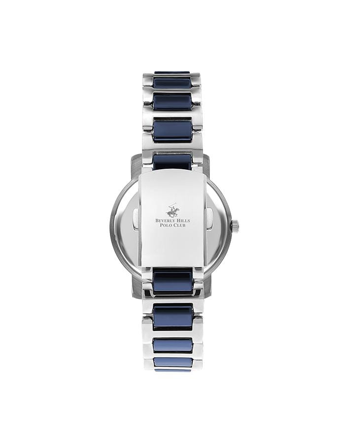 Американские женские часы с минеральным стекломМинеральное стеклоМинеральное стекло представляет собой искусственно выращенный минерал кварца. Такое стекло отличается особой устойчивостью к повреждениям и царапинам. Уступает по некоторым качествам сапфировому стеклу. и кристаллами Beverly Hills Polo Club BP3349X.390, кварцевый механизм с высокой точностью. Класс водозащиты: 30 метров, позволит защитить корпус от случайных брызг или капель дождя. Корпус часов изготовлен из стали. Стальной браслет на раскладной застёжкеРаскладная застёжкаТакой тип застёжки используется только на браслетах из металла. Она никогда не раскрывается полностью, происходит разделение на 2 и более частей. Раскладывающая застёжка снизит вероятность потери часов к минимуму. с вставками керамики.