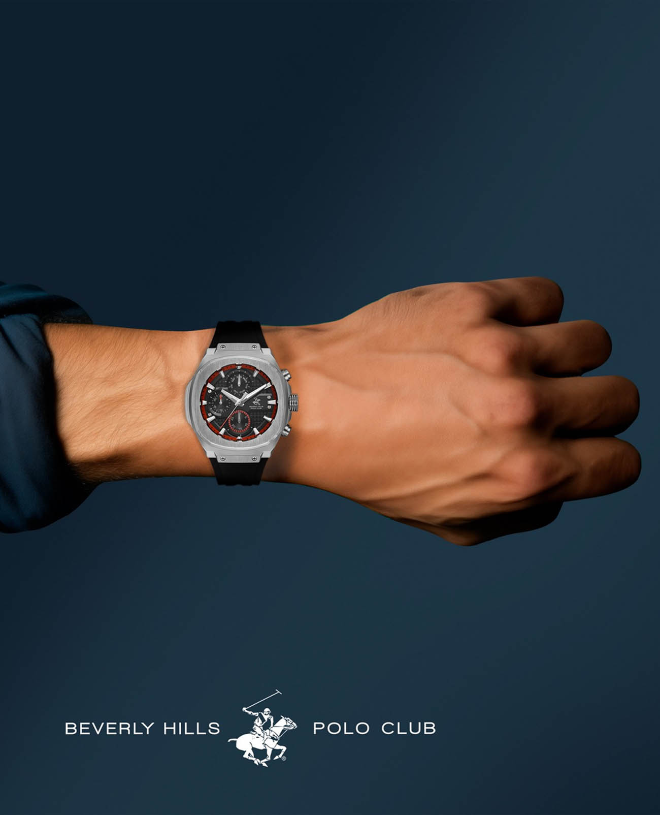 Американские мужские часы Beverly Hills Polo Club Quartz BP3623X.351, кварцевый механизм с высокой точностью. Минеральное стеклоМинеральное стеклоМинеральное стекло представляет собой искусственно выращенный минерал кварца. Такое стекло отличается особой устойчивостью к повреждениям и царапинам. Уступает по некоторым качествам сапфировому стеклу. устойчивое к мелким механическим повреждениям. Корпус часов изготовлен из стали. Стрелки и метки с люминесцентным покрытиемЛюминесцентное покрытиеПозволяет считывать показания времени в темноте. Производители наносят на стрелки, часовые индексы, безель или поверхность циферблата светонакопительный состав, дающий холодное свечение.. Класс водозащиты: 50 метров, позволит защитить корпус от случайных брызг или капель дождя. Каучуковый ремешок на стандартной застежке.