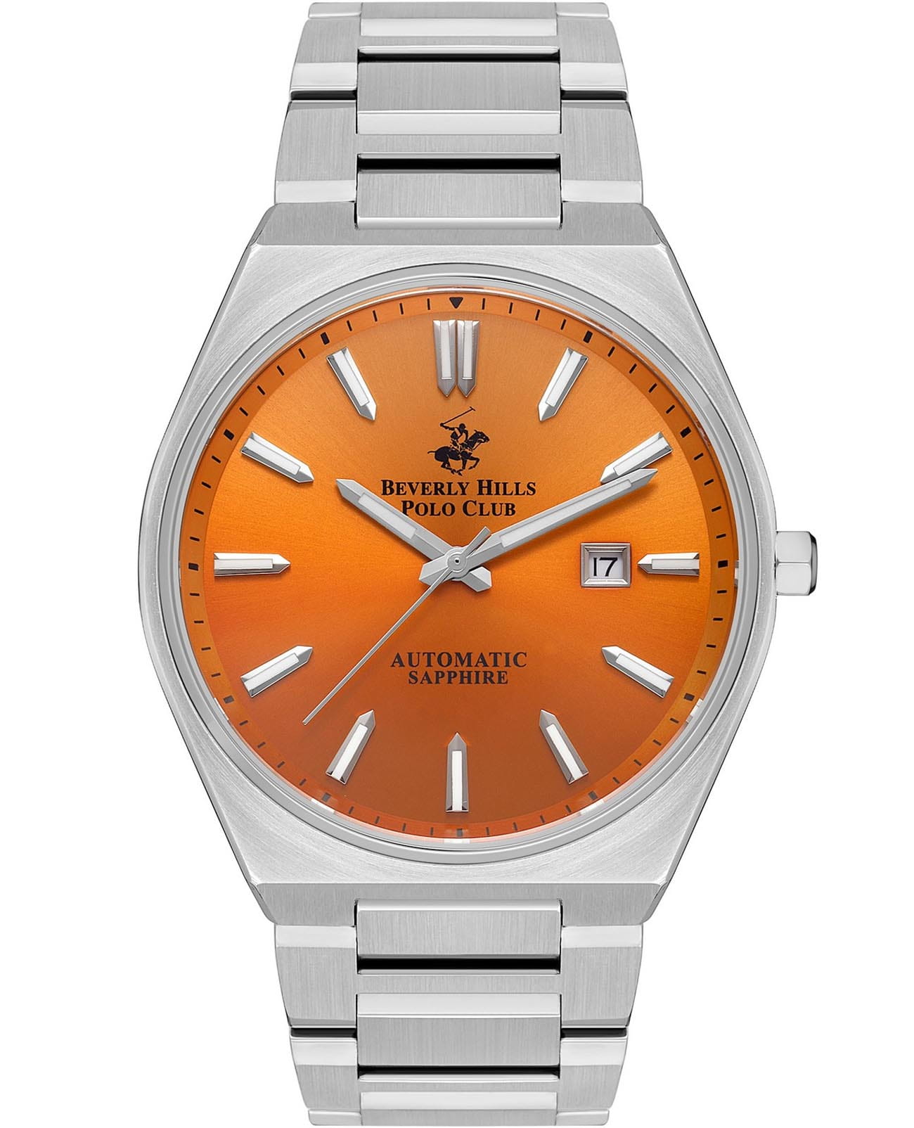 Американские мужские часы с сапфировым стекломСапфировое стеклоПрочный и надёжный материал из кристалла сапфира синтетического происхождения, характеризующийся особой твёрдостью и устойчивостью к царапинам и повреждениям. Beverly Hills Polo Club BP3574X.380, механический механизм (автоматический калибр) с высокой точностью. Сапфировое стеклоСапфировое стеклоПрочный и надёжный материал из кристалла сапфира синтетического происхождения, характеризующийся особой твёрдостью и устойчивостью к царапинам и повреждениям. устойчивое к появлению царапин, обладающее высокой прозрачностью. Класс водозащиты: 100 метров, позволит плавать, нырять и заниматься другими водными видами спорта. Корпус часов изготовлен из стали. Стальной браслет на раскладной застёжкеРаскладная застёжкаТакой тип застёжки используется только на браслетах из металла. Она никогда не раскрывается полностью, происходит разделение на 2 и более частей. Раскладывающая застёжка снизит вероятность потери часов к минимуму.. Стрелки и метки с люминесцентным покрытиемЛюминесцентное покрытиеПозволяет считывать показания времени в темноте. Производители наносят на стрелки, часовые индексы, безель или поверхность циферблата светонакопительный состав, дающий холодное свечение.. Окошко даты находится в положении 3 часа.