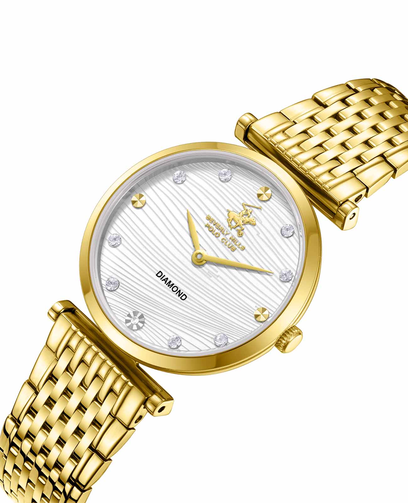 Женские наручные часы Beverly Hills Polo Club BP3737X.130 сочетают в себе элегантный дизайн и надежность современных технологий. Модель обладает круглым корпусом, изготовленным из нержавеющей стали с IP-покрытиемIP-покрытиеМетод ионного напыления. Демонстрирует повышенную устойчивость к истиранию, окислению и химическим веществам. Под воздействием высокого давления и температуры около 1500°C молекулы металла надёжно соединяются с частицами корпуса часов., что обеспечивает долговечность и устойчивость к внешним воздействиям. Для защиты циферблата используется минеральное стеклоМинеральное стеклоМинеральное стекло представляет собой искусственно выращенный минерал кварца. Такое стекло отличается особой устойчивостью к повреждениям и царапинам. Уступает по некоторым качествам сапфировому стеклу., которое эффективно противостоит царапинам. Часы оснащены кварцевым механизмом, гарантирующим точное время без необходимости подзаводки. Водонепроницаемость модели достигает 50 метров (WR 50), что позволяет использовать их при контакте с водой, например, во время мытья рук или дождя. Стальной браслет миланского плетения с IP-покрытиемIP-покрытиеМетод ионного напыления. Демонстрирует повышенную устойчивость к истиранию, окислению и химическим веществам. Под воздействием высокого давления и температуры около 1500°C молекулы металла надёжно соединяются с частицами корпуса часов. на застёжке «бабочка» с кнопкамиЗастёжка "бабочка"Такой вид застёжки дополняется предохранителями, помогающими избежать случайного раскрытия браслета. Обладают изящным исполнением. , обеспечивающей комфортное ношение и безопасность.