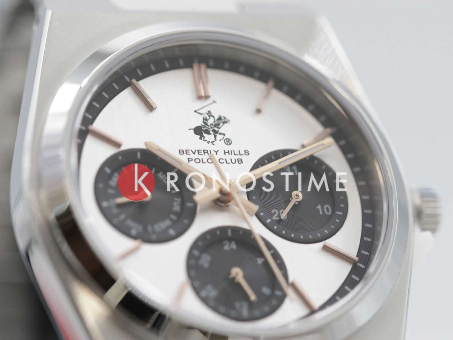 Beverly Hills Polo Club BP3754X.330 – элегантные женские часы, сочетающие стильный дизайн и высокую функциональность. Корпус диаметром 33 мм выполнен из стали, обеспечивающего прочность и долговечность. Циферблат украшен, и защищён минеральным стекломМинеральное стеклоМинеральное стекло представляет собой искусственно выращенный минерал кварца. Такое стекло отличается особой устойчивостью к повреждениям и царапинам. Уступает по некоторым качествам сапфировому стеклу., устойчивым к царапинам. Часы оснащены точным кварцевым механизмом, гарантирующим надёжное отображение времени. Браслет из нержавеющей стали на застёжке-бабочке с кнопкамиЗастёжка "бабочка"Такой вид застёжки дополняется предохранителями, помогающими избежать случайного раскрытия браслета. Обладают изящным исполнением. , обеспечивающей комфортное ношение и надёжную фиксацию на запястье. Водозащита до 50 метров (5 ATM) позволяет использовать часы в повседневной жизни, включая кратковременное погружение в воду.