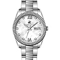 Механизм часов кварцевый, питание от батарейки, что обеспечивает точность хода и минимальное обслуживание. На циферблате отображаются функции даты, дня недели делая их особенно удобными для повседневного использования.