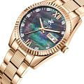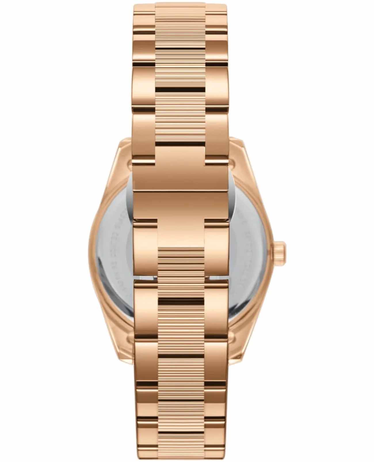 Стальной браслет с IP-покрытиемIP-покрытиеМетод ионного напыления. Демонстрирует повышенную устойчивость к истиранию, окислению и химическим веществам. Под воздействием высокого давления и температуры около 1500°C молекулы металла надёжно соединяются с частицами корпуса часов. на застёжке-бабочке с кнопкамиЗастёжка "бабочка"Такой вид застёжки дополняется предохранителями, помогающими избежать случайного раскрытия браслета. Обладают изящным исполнением. . Часы обладают водозащитой до 30 метров, позволит защитить корпус от случайных брызг или капель дождя. Цирконы придают часам неповторимый шарм и изысканность.