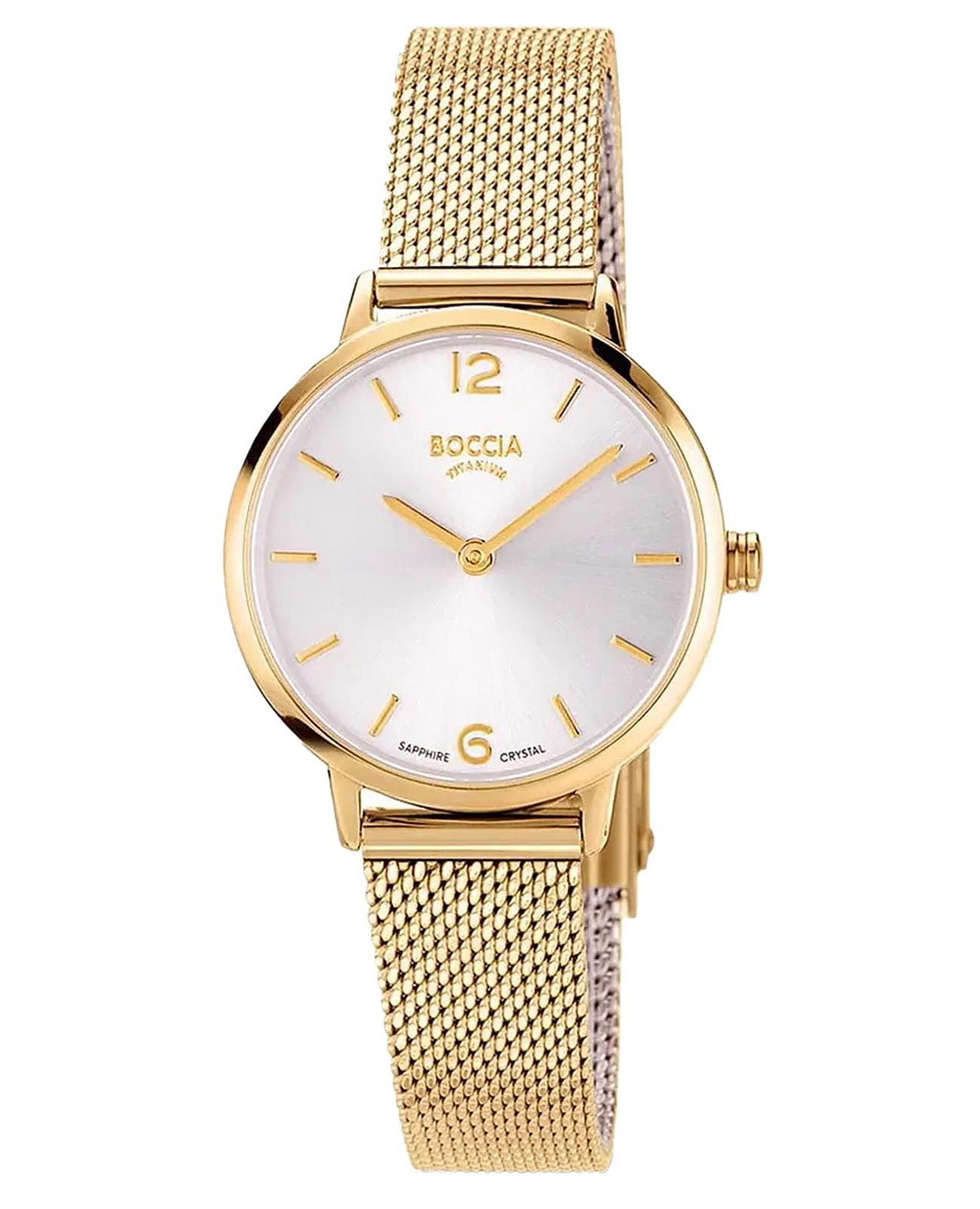 Женские немецкие титановые часы Boccia Titanium Circle-Oval 3345-03, кварцевый механизм с высокой точностью. Минеральное стеклоМинеральное стеклоМинеральное стекло представляет собой искусственно выращенный минерал кварца. Такое стекло отличается особой устойчивостью к повреждениям и царапинам. Уступает по некоторым качествам сапфировому стеклу. устойчивое к появлению царапин, обладающее высокой прозрачностью. Корпус изготовлен из титана c PVDPVDУльтратонкое покрытие наносится в технике вакуумного напыления, сочетает в себе нитрид титана особой прочности со слоем золота или оксида хрома. Несёт в себе декоративную или защитную функцию. покрытием. Метки в виде штрихов двух арабских цифр. Класс водозащиты: 50 метров, позволит защитить корпус от случайных брызг или капель дождя. Стальной браслет миланского плетения c PVDPVDУльтратонкое покрытие наносится в технике вакуумного напыления, сочетает в себе нитрид титана особой прочности со слоем золота или оксида хрома. Несёт в себе декоративную или защитную функцию. покрытием на раскладной застёжкеРаскладная застёжкаТакой тип застёжки используется только на браслетах из металла. Она никогда не раскрывается полностью, происходит разделение на 2 и более частей. Раскладывающая застёжка снизит вероятность потери часов к минимуму..