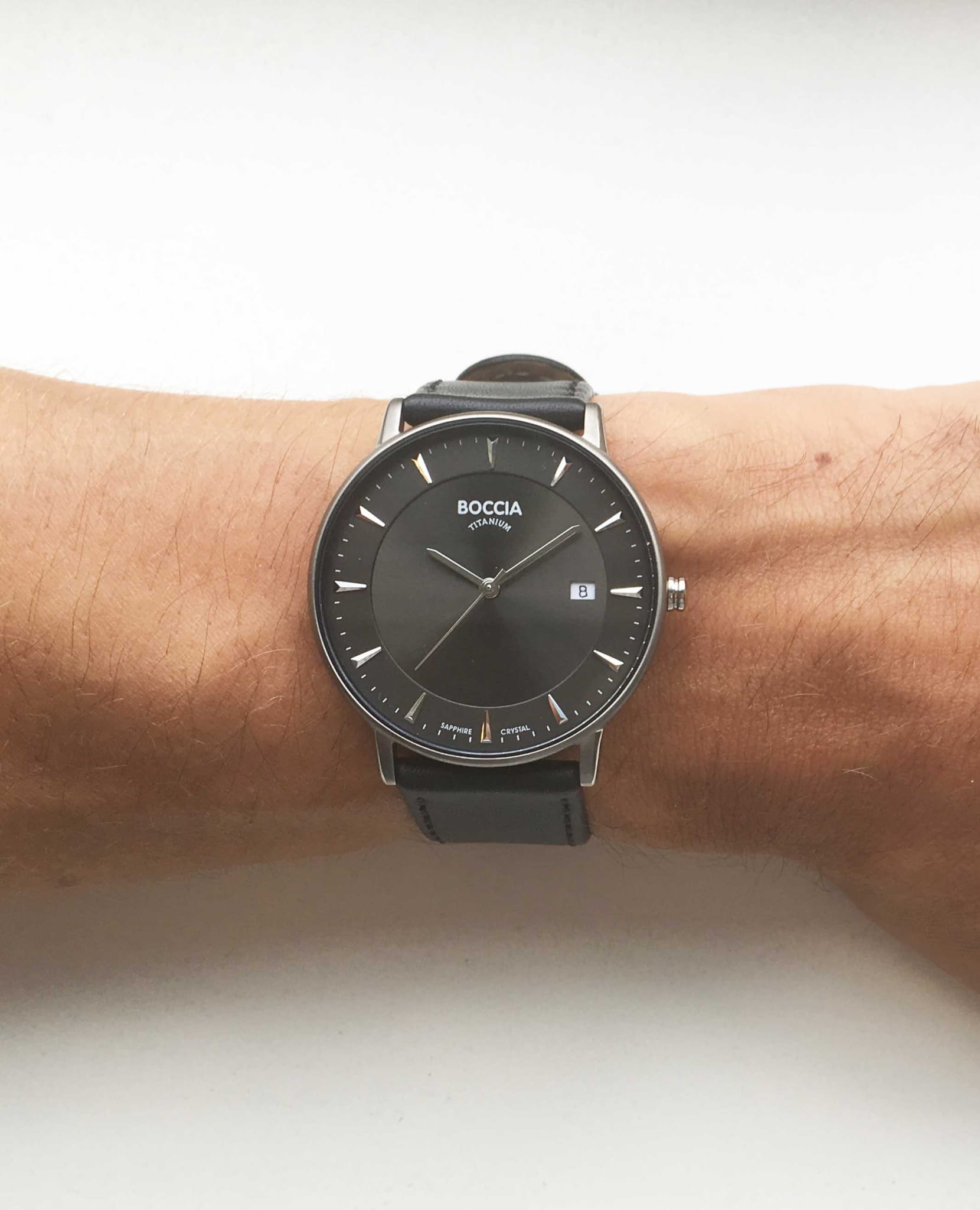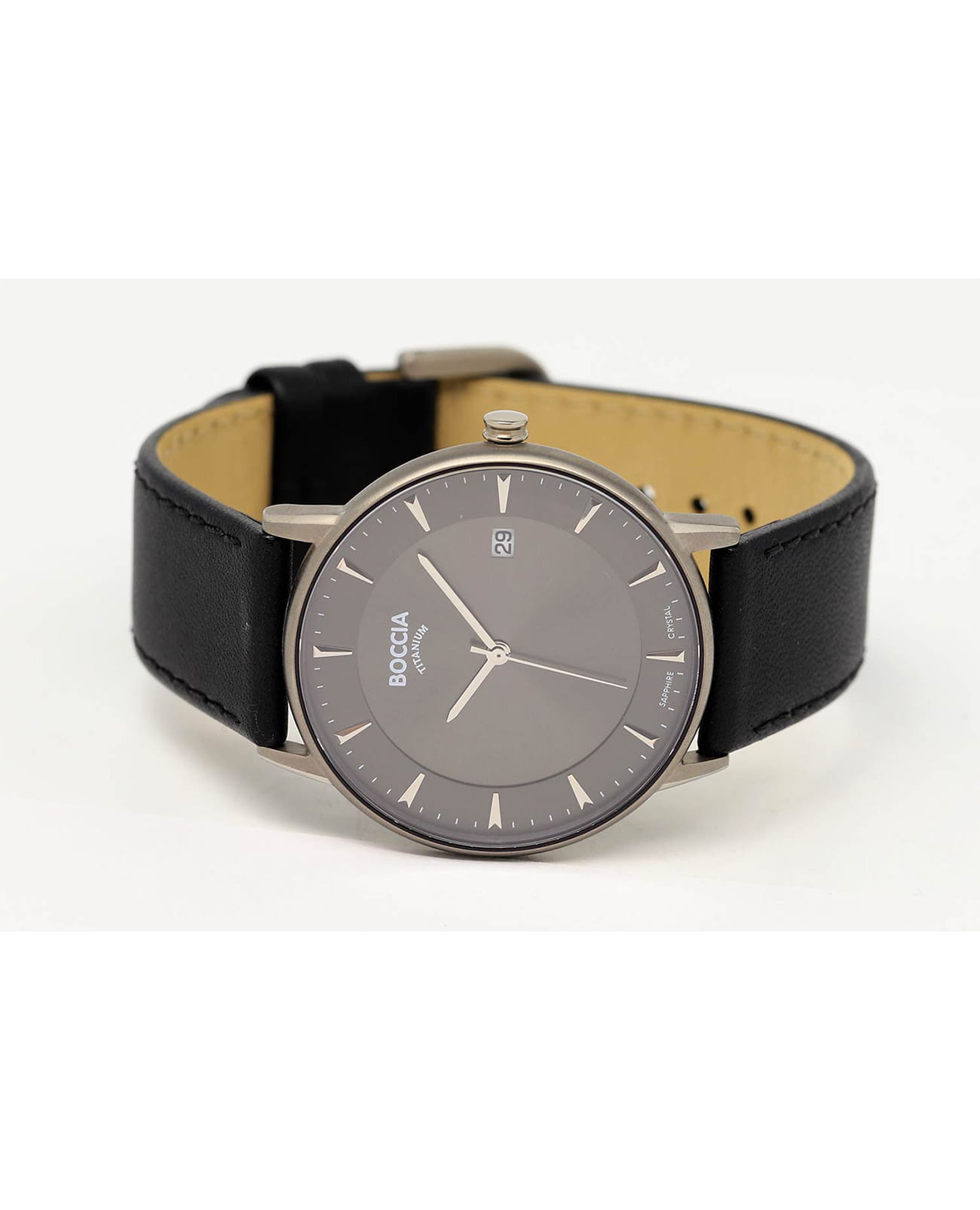 Мужские немецкие титановые часы Boccia Titanium Circle-Oval 3607-01, кварцевый механизм с высокой точностью. Сапфировое стеклоСапфировое стеклоПрочный и надёжный материал из кристалла сапфира синтетического происхождения, характеризующийся особой твёрдостью и устойчивостью к царапинам и повреждениям. устойчивое к появлению царапин, обладающее высокой прозрачностью. Корпус изготовлен из титана. Окошко даты в положении 3 часов. Класс водозащиты: 50 метров, позволит защитить корпус от случайных брызг или капель дождя. Кожаный браслет на стандартной застежке.
