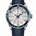 Мужские водонепроницаемые швейцарские часы Breitling Superocean Automatic 42 A17375E71G1S1, механический механизм (автоматический калибр) с высокой точностью. Сапфировое стеклоСапфировое стеклоПрочный и надёжный материал из кристалла сапфира синтетического происхождения, характеризующийся особой твёрдостью и устойчивостью к царапинам и повреждениям. устойчивое к появлению царапин, обладающее высокой прозрачностью. Класс водозащиты: 300 метров, позволит плавать, нырять и заниматься другими водными видами спорта. Корпус часов изготовлен из стали. Силиконовый ремешок с раскладной застёжкойРаскладная застёжкаТакой тип застёжки используется только на браслетах из металла. Она никогда не раскрывается полностью, происходит разделение на 2 и более частей. Раскладывающая застёжка снизит вероятность потери часов к минимуму.. Стрелки и метки с люминесцентным покрытиемЛюминесцентное покрытиеПозволяет считывать показания времени в темноте. Производители наносят на стрелки, часовые индексы, безель или поверхность циферблата светонакопительный состав, дающий холодное свечение.. Широкие стрелки и индексы с люминесцентным покрытиемЛюминесцентное покрытиеПозволяет считывать показания времени в темноте. Производители наносят на стрелки, часовые индексы, безель или поверхность циферблата светонакопительный состав, дающий холодное свечение. обеспечивают легкую читаемость под водой. Вращающийся стальной безельБезельВнешний ободок, закрепляющий стекло. В спортивных часах так называется поворотное кольцо с делениями на циферблате, выполняет роль таймера – замеряет отрезки времени на шкале. Неподвижный безель – элемент декора. Однонаправленно вращающийся безель на дайверских часах позволяет фиксировать моменты погружения и выныривания на поверхность. с люминесцентным покрытиемЛюминесцентное покрытиеПозволяет считывать показания времени в темноте. Производители наносят на стрелки, часовые индексы, безель или поверхность циферблата светонакопительный состав, дающий холодное свечение. Superluminova из нержавеющей стали и керамики, защищенный от царапин, никогда не изнашивается и не выцветает.