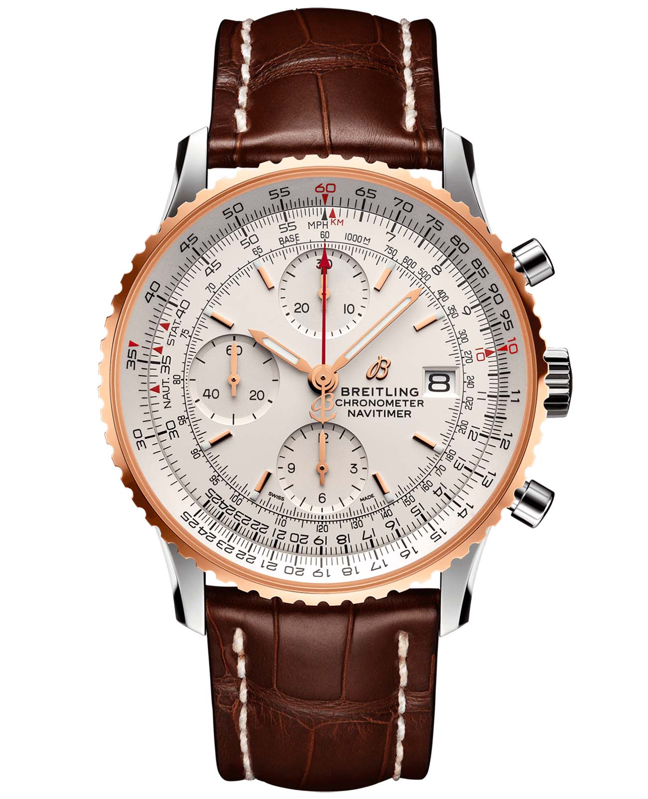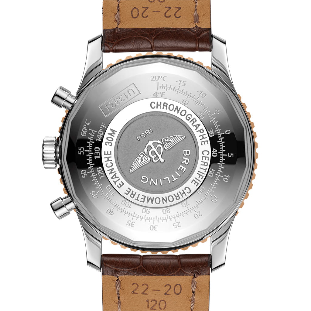 Отличительная черта модели Breitling Navitimer Chronograph 41 U13324211G1P2 – корпус из нержавеющей стали с вращающимся в оба направления безелем из 18-каратного розового золота..