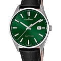Мужские наручные часы Candino Couple C4622/B сочетают в себе классический дизайн и надежность швейцарского качества. Модель обладает круглым корпусом, изготовленным из нержавеющей стали марки 316L, что обеспечивает высокую устойчивость к коррозии и механическим повреждениям . Корпус оснащен сапфировым стекломСапфировое стеклоПрочный и надёжный материал из кристалла сапфира синтетического происхождения, характеризующийся особой твёрдостью и устойчивостью к царапинам и повреждениям., которое гарантирует защиту от царапин и других внешних воздействий . Часы имеют кожаный ремешок черного цвета, обеспечивающий комфортное ношение в течение дня . Циферблат зеленого цвета дополнен окном даты, расположенном на позиции «3 часа», что добавляет удобства при повседневном использовании . Часы оснащены кварцевым механизмом, который известен своей точностью и минимальной потребностью в обслуживании. Погрешность хода составляет около 20 секунд в месяц, что гарантирует надежность показаний времени . Водонепроницаемость модели достигает 5 атмосфер (50 метров), что позволяет использовать часы в условиях легкого контакта с водой, например, во время мытья рук или дождя, но не рекомендуется для плавания или дайвинга . Модель Candino Classic C4622/A станет идеальным выбором для ценителей классического стиля и практичности в повседневной жизни.