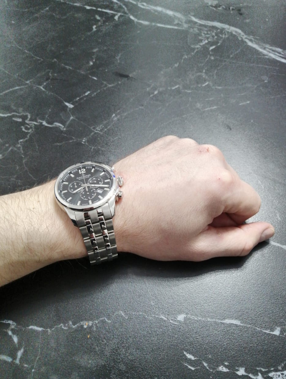 Швейцарские мужские наручные часы-хронографХронографФункция позволяет измерять отрезки времени с особой точностью: часы, минуты, секунды. Верным признаком хронографа является наличие на циферблате 3 дополнительных окошек-счётчиков. Candino Chronograph C4744/6, кварцевый механизм с высокой точностью. Сапфировое стеклоСапфировое стеклоПрочный и надёжный материал из кристалла сапфира синтетического происхождения, характеризующийся особой твёрдостью и устойчивостью к царапинам и повреждениям. устойчивое к появлению царапин, обладающее высокой прозрачностью. Часы, минуты, секунды. Окошко даты находится в положении между 4 и 5 часов. Класс водозащиты: 100 метров, позволит плавать, нырять и заниматься другими водными видами спорта. Раскладная застёжкаРаскладная застёжкаТакой тип застёжки используется только на браслетах из металла. Она никогда не раскрывается полностью, происходит разделение на 2 и более частей. Раскладывающая застёжка снизит вероятность потери часов к минимуму. с фиксатором. Корпус часов изготовлен из нержавеющей стали. Стрелки и метки с люминесцентным покрытиемЛюминесцентное покрытиеПозволяет считывать показания времени в темноте. Производители наносят на стрелки, часовые индексы, безель или поверхность циферблата светонакопительный состав, дающий холодное свечение..