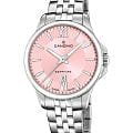 Женские наручные часы Candino C4766/7 из коллекции Lady Elegance сочетают в себе элегантный дизайн и надежность современных технологий. Модель обладает круглым корпусом диаметром 34 мм, изготовленным из нержавеющей стали, что обеспечивает высокую устойчивость к внешним воздействиям . Браслет выполнен из металла с раскладной застежкойРаскладная застёжкаТакой тип застёжки используется только на браслетах из металла. Она никогда не раскрывается полностью, происходит разделение на 2 и более частей. Раскладывающая застёжка снизит вероятность потери часов к минимуму., гарантирующей комфортное ношение и безопасность . Розовый циферблат оснащен окном даты, а стрелки имеют люминесцентное покрытиеЛюминесцентное покрытиеПозволяет считывать показания времени в темноте. Производители наносят на стрелки, часовые индексы, безель или поверхность циферблата светонакопительный состав, дающий холодное свечение., обеспечивающее видимость в темноте . Для защиты используется сапфировое стеклоСапфировое стеклоПрочный и надёжный материал из кристалла сапфира синтетического происхождения, характеризующийся особой твёрдостью и устойчивостью к царапинам и повреждениям., которое противостоит появлению царапин и обеспечивает длительную сохранность внешнего вида часов . Часы работают на кварцевом механизме, что гарантирует точное время без необходимости подзаводки . Водонепроницаемость часов достигает 5 атмосфер (50 метров), что позволяет использовать их во время повседневных водных процедур, однако не рекомендуется для плавания или дайвинга .