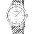 Мужские кварцевые часы Candino Series 1947 — это сочетание минимализма, швейцарского качества и современного дизайна. Корпус диаметром 39 мм и толщиной всего 6 мм выполнен из нержавеющей стали 316L, что делает часы особенно лёгкими и комфортными в ношении. Циферблат белого цвета оформлен двумя стрелками, без индикации даты, что придаёт дизайну чистоту и элегантность. Циферблат защищён сапфировым стекломСапфировое стеклоПрочный и надёжный материал из кристалла сапфира синтетического происхождения, характеризующийся особой твёрдостью и устойчивостью к царапинам и повреждениям., устойчивым к царапинам. Механизм — кварцевый произведённый в Швейцарии. Часы оснащены стальным браслетом с застёжкой «бабочка» с кнопкамиЗастёжка "бабочка"Такой вид застёжки дополняется предохранителями, помогающими избежать случайного раскрытия браслета. Обладают изящным исполнением. . Водонепроницаемость 50 м позволяет использовать часы в повседневных условиях. Гарантия — 2 года. Идеальный выбор для тех, кто ценит лаконичный стиль, точность и надёжность.