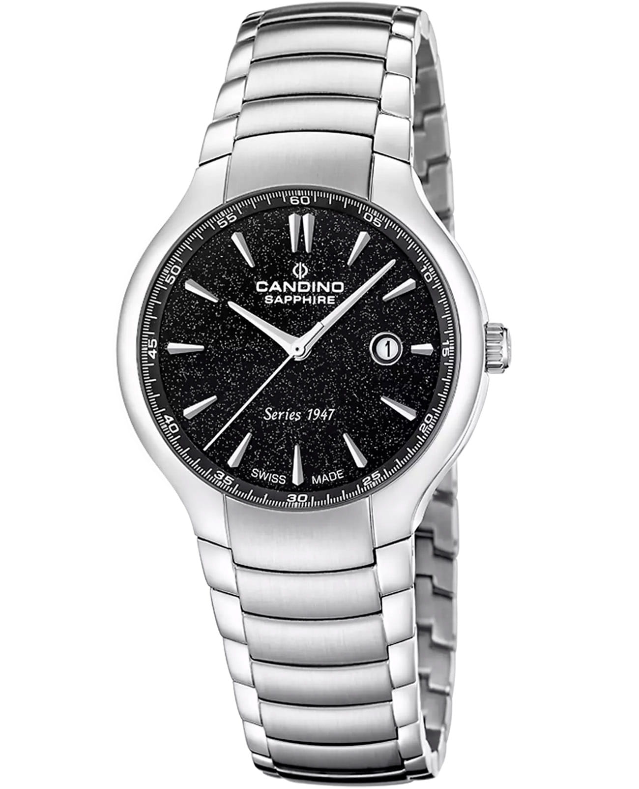Женские кварцевые часы Candino — это сочетание элегантности и швейцарского качества. Корпус диаметром 34 мм и толщиной 8,6 мм выполнен из нержавеющей стали 316L. Циферблат чёрного цвета оформлен индексами, придающими изделию изысканность. Окошко даты расположено в положении 3 часов. Циферблат защищён сапфировым стекломСапфировое стеклоПрочный и надёжный материал из кристалла сапфира синтетического происхождения, характеризующийся особой твёрдостью и устойчивостью к царапинам и повреждениям., устойчивым к царапинам. Механизм — кварцевый, произведённый в Швейцарии. Часы оснащены стальным браслетом на застёжке «бабочка» с кнопкамиЗастёжка "бабочка"Такой вид застёжки дополняется предохранителями, помогающими избежать случайного раскрытия браслета. Обладают изящным исполнением. . Водонепроницаемость 100 м позволяет использовать часы для плавания и повседневного ношения. Гарантия — 2 года. Идеальный выбор для тех, кто ценит стиль, точность и надёжность.