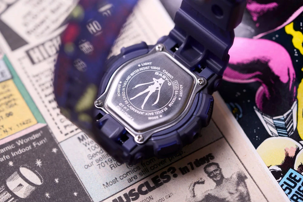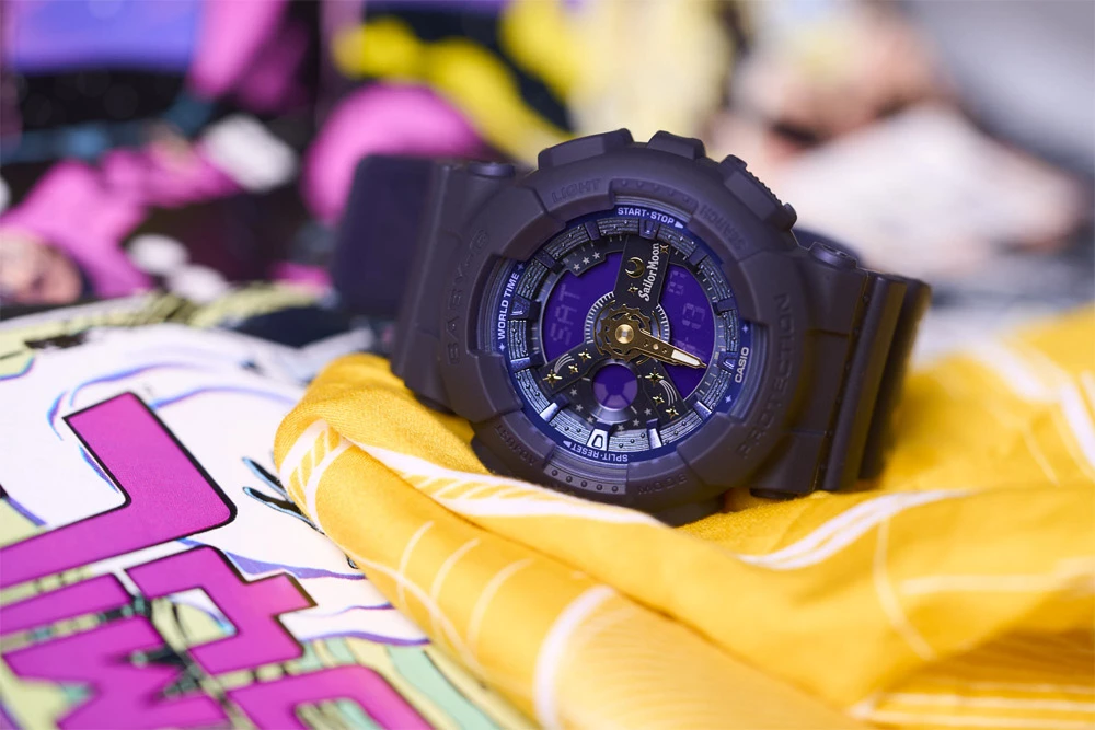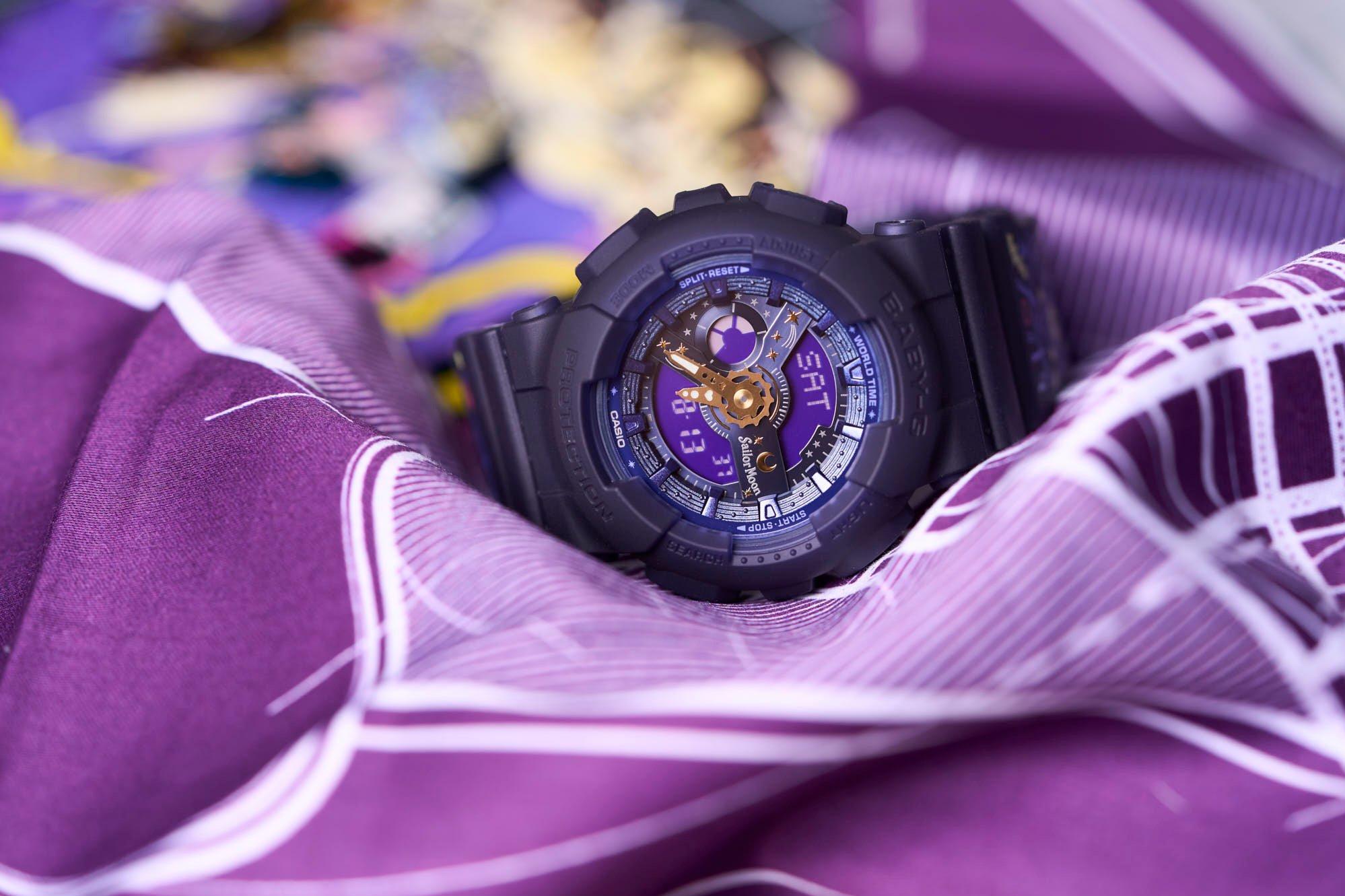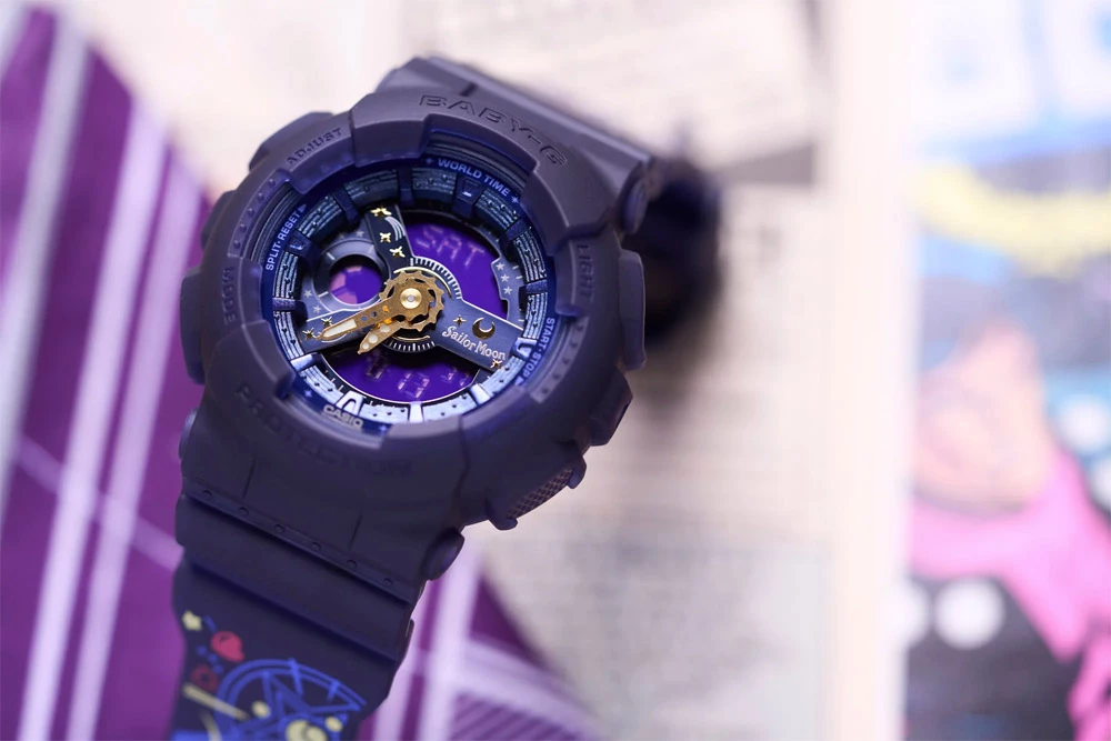 Модель является коллаборацией Baby-G и легендарной японской аниме-франшизы "Сейлор Мун". Помимо упоминания названия Sailor Moon на циферблате и задней крышке часов