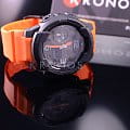 Чёрный циферблат дополнен контрастными стрелками и метками. Крупная индикация времени, арабские цифры позволили добиться оптимальной читаемости информации. Японский кварцевый механизм отличается высокой точностью хода. Калибр заключён в противоударный корпусУдаропрочный корпусМеханизм заключён в корпус, выполненный из современных материалов, устойчивых к ударам, механическим повреждениям и падению с высоты: инновационный пластик, карбон, нержавеющая сталь, титан. из надёжного пластика, устойчивого к повреждениям и падению. Батарейка SR726W рассчитана на 2-летний срок. Закаленное минеральное стекло. Светодиодная подсветкаСветодиодная подсветкаСветодиодная или LED-подсветка обеспечивает появление яркого холодного свечения за счёт LED-элементов - маленьких лампочек. Они потребляют минимальное количество энергии, чаще всего можно встретить 1 светодиод, в нижней части циферблата.. Включение и отключение звука кнопок. Водонепроницаемость 10 бар. Перемещение стрелок. Ежечасный сигнал. Будильник, мировое времяМировое время Полезное часовое усложнение, отображающее время в основных городах и известных областях по всему миру, оно связано с часовыми поясами, удобно для путешественников и бизнесменов. – 31 часовой пояс, таймер, UTCUTCВсемирное кординационное время, не имеющее привязки к географическому положению Гринвича, основывается на атомном отсчёте времени. Регулировка времени осуществляется более точно, чем устаревшее GMT.