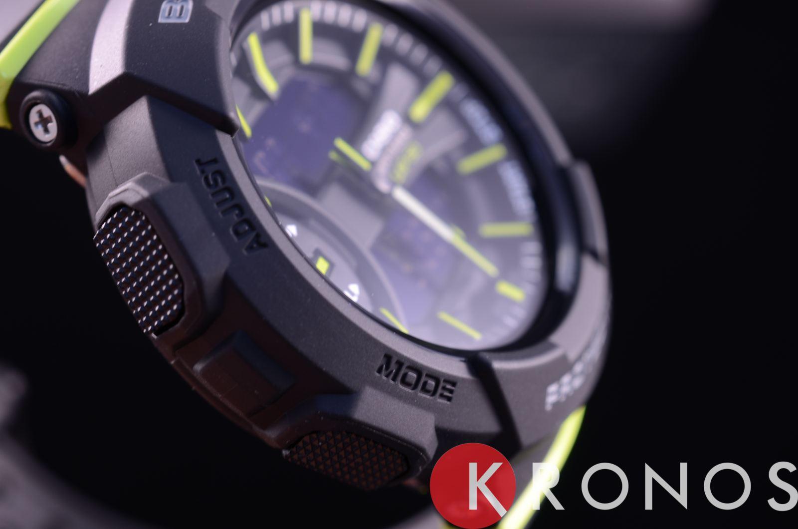 Модель в чёрном исполнении наделена зелёными элементами дизайна. Это полезный аксессуар для любительниц бега, благодаря которому можно в разы повысить эффективность тренировок. Функция Lap Memory 60™ позволяет фиксировать и хранить информацию о дате пробежек, показатели времени круга. Память рассчитана на 60 этапов. Японский кварцевый механизм. Батарейка с 3-летним сроком службы. Минеральное стекло. Полимерный ударопрочный корпусУдаропрочный корпусМеханизм заключён в корпус, выполненный из современных материалов, устойчивых к ударам, механическим повреждениям и падению с высоты: инновационный пластик, карбон, нержавеющая сталь, титан.. Циферблат со светодиодной подсветкойСветодиодная подсветкаСветодиодная или LED-подсветка обеспечивает появление яркого холодного свечения за счёт LED-элементов - маленьких лампочек. Они потребляют минимальное количество энергии, чаще всего можно встретить 1 светодиод, в нижней части циферблата.. Будильник с функцией «подремать». ХронографХронографФункция позволяет измерять отрезки времени с особой точностью: часы, минуты, секунды. Верным признаком хронографа является наличие на циферблате 3 дополнительных окошек-счётчиков., секундомер, таймер, календарь. Габариты: 46,4 x 42,6 x 15,3 мм.