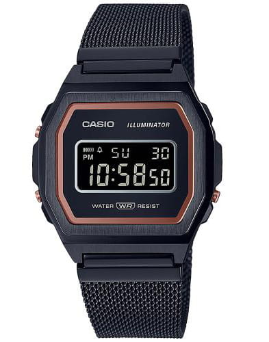 Японские мужские наручные часы Casio Collection A1000MB-1B, электронный механизм с высокой точностью. Класс водозащиты: 50 метров, позволит защитить корпус от случайных брызг или капель дождя. Корпус часов изготовлен из стали, черного цвета.