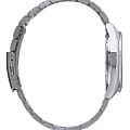 Минималистичный чёрный циферблат отличается крупной индикацией времени, что позволяет идеально считывать показатели даже при мимолётном взгляде на часы. Для большего удобства стрелки и метки имеют светонакопительное покрытиеЛюминесцентное покрытиеПозволяет считывать показания времени в темноте. Производители наносят на стрелки, часовые индексы, безель или поверхность циферблата светонакопительный состав, дающий холодное свечение., что позволяет использовать аксессуар в темноте. Кварцевый механизм обеспечивается энергией от батарейки, рассчитанной на 10 лет работы, нет необходимости регулярного завода. Надёжное минеральное стекло. Водостойкость 100 метров. Габариты: 40 x 44,6 x 10,1 мм.