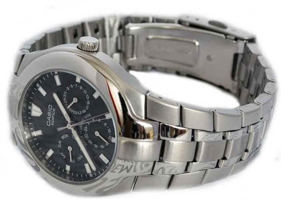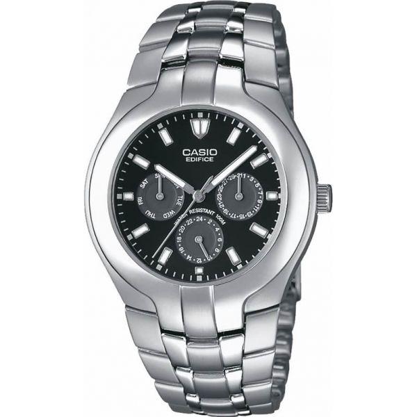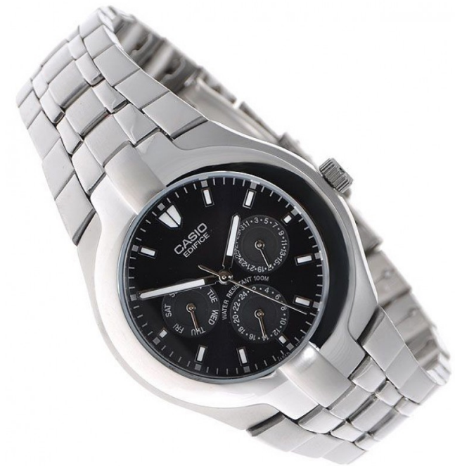 Мужские классические наручные часы Casio Edifice надежные и практичные. Кварцевый японский механизм Miyota. Точность хода не хуже -10 +15 сек./в месяц. Часы оснащены календарем и 24х часовым форматом времени. Циферблат черного цвета с контрастными индексами. Стрелки и индексы с светонакопительным нанесением. Корпус и браслет выполнены из высококачественной стали с антикоррозийными свойствами. Минеральное стекло устойчиво к появлению царапин Водонепроницаемость 100М. В часах можно плавать. Степень водонепроницаемости не является величиной, эквивалентной функциональной рабочей глубине.