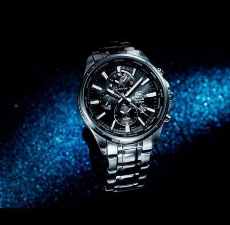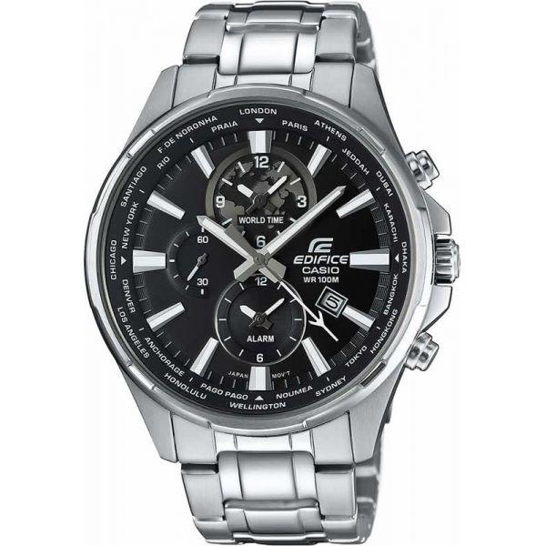 Мужские наручные часы Casio Edifice надежные и практичные. Кварцевый японский механизм Miyota. Отображение времени в различных часовых поясах с обозначением 29 основных городов в этих зонах и универсальное время. (в режиме «текущего времени» отображается индикатором на «12 часах»). Будильник (устанавливается и отображается индикатором на «6 часах»). Стрелки и индексы с светонакопительным нанесением. Корпус и браслет выполнены из высококачественной стали с антикоррозийными свойствами. Минеральное стекло устойчиво к появлению царапин. Циферблат - рельефный, стилизованный под картографическое изображение земного шара. Водонепроницаемость (10 Бар).