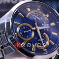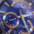Кварцевый хронографХронографФункция позволяет измерять отрезки времени с особой точностью: часы, минуты, секунды. Верным признаком хронографа является наличие на циферблате 3 дополнительных окошек-счётчиков. понравится любителям активного образа жизни, динамичный дизайн модели станет отображением вашей жизненной позиции и стремления к победам. Синий циферблат с узором и золотистыми метками и стрелками дополнен миниатюрными счётчиками, отличающимися оригинальным исполнением и расположением. Минеральное стекло устойчиво к царапинам. Срок службы батарейки - 3 года. Люминесцентная подсветкаЛюминесцентное покрытиеПозволяет считывать показания времени в темноте. Производители наносят на стрелки, часовые индексы, безель или поверхность циферблата светонакопительный состав, дающий холодное свечение.. Водонепроницаемость до 10 бар, чему дополнительно способствует закручивающаяся крышка. Секундомер, отображение даты. Габариты: 51 x 43,8 x 12,4 мм.