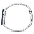 Это отличное решение для современных мужчин, стремящихся выглядеть стильно в любой ситуации. Синий циферблат с крупной индикацией времени дополнен яркими акцентами голубого цвета, что придаёт общему дополнению динамичность. Прослеживается дайверский характер благодаря однонаправленно вращающемуся фактурному безелюБезельВнешний ободок, закрепляющий стекло. В спортивных часах так называется поворотное кольцо с делениями на циферблате, выполняет роль таймера – замеряет отрезки времени на шкале. Неподвижный безель – элемент декора. Однонаправленно вращающийся безель на дайверских часах позволяет фиксировать моменты погружения и выныривания на поверхность.. И браслет, и ударопрочный корпусУдаропрочный корпусМеханизм заключён в корпус, выполненный из современных материалов, устойчивых к ударам, механическим повреждениям и падению с высоты: инновационный пластик, карбон, нержавеющая сталь, титан. сделаны из стали 316L с противокоррозионными свойствами. Кварцевый японский механизм отличается точностью хода +/- 20 секунд в месяц. Срок службы батарейки - 3 года. Частичное IP-покрытиеIP-покрытиеМетод ионного напыления. Демонстрирует повышенную устойчивость к истиранию, окислению и химическим веществам. Под воздействием высокого давления и температуры около 1500°C молекулы металла надёжно соединяются с частицами корпуса часов.. Минеральное стекло. Люминесцентное покрытие NeobriteПодсветка NeobriteИспользование светонакопительных составов на основе сульфида цинка или алюмината стронция, яркий свет можно наблюдать на протяжении 6-10 часов после «зарядки» часов около источника света.. Водостойкость 100 метров. Задняя крышка с винтовым фиксатором. Заводная головка с системой защиты. Индикация числа. Габариты: 47,2 x 41 x 10,4 мм.