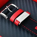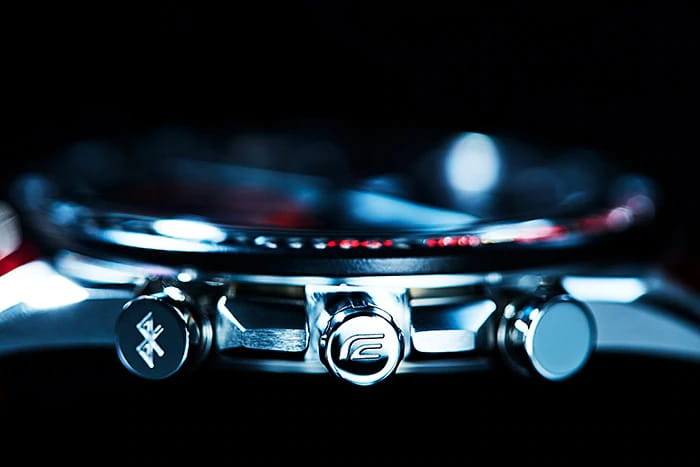 Для оформления премиальной модели были выбраны фирменные оттенки Scuderia Torro Rosso - синий, серебристый, красный. Оригинальным элементом стал тканевый ремешок со вставками из кевлара. Инженеры Casio оснастили часы тонким японским кварцевым механизмом, что позволило добиться появлению корпуса всего в 8,9 мм. Модель получает питание от энергии любого источника света, реализуя технологию . Индикатор состояния элемента питания подскажет, когда часам будет необходима подзарядка. Режим экономии энергии. Карбоновый безельБезельВнешний ободок, закрепляющий стекло. В спортивных часах так называется поворотное кольцо с делениями на циферблате, выполняет роль таймера – замеряет отрезки времени на шкале. Неподвижный безель – элемент декора. Однонаправленно вращающийся безель на дайверских часах позволяет фиксировать моменты погружения и выныривания на поверхность. и циферблат. Водостойкость 10 бар. Ударопрочный корпусУдаропрочный корпусМеханизм заключён в корпус, выполненный из современных материалов, устойчивых к ударам, механическим повреждениям и падению с высоты: инновационный пластик, карбон, нержавеющая сталь, титан. из стали 316L. Сапфировое стекло с антибликовым покрытием. Функции: BluetoothBluetoothСовременная технология, позволяющая синхронизировать часы с телефоном и переносить данные. Часы с Bluetooth расширяют возможности вашего смартфона и делают его использование ещё более удобным. нового поколения, секундомер, память на 200 результатов, поиск телефона, мировое времяМировое время Полезное часовое усложнение, отображающее время в основных городах и известных областях по всему миру, оно связано с часовыми поясами, удобно для путешественников и бизнесменов. , будильник, календарь. Люминесцентная подсветка NeobriteПодсветка NeobriteИспользование светонакопительных составов на основе сульфида цинка или алюмината стронция, яркий свет можно наблюдать на протяжении 6-10 часов после «зарядки» часов около источника света.. Габариты: 49,9 x 45,6 x 8,9 мм.