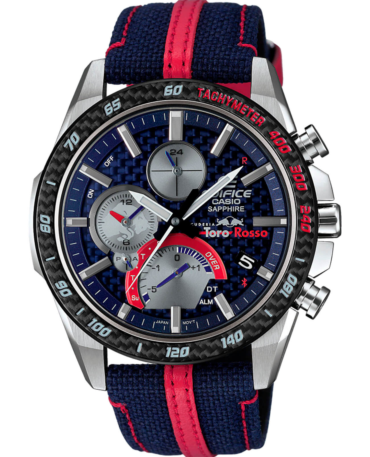 Мужские японские часы Casio Edifice EQB-1000TR-2AER из серии EQB-1000 представляют собой лимитированную коллаборацию совместно с автогоночной командой Формулы-1 Torro Rosso.