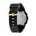 Спортивный аксессуар с «тем самым» 8-угольным корпусом стильно сидит на руке, конструкция не выглядит громоздкой. Он выполнен в чёрном матовом цвете с золотистой окантовкой циферблата, что добавляет образу большей строгости и брутальности. Противоударный корпусУдаропрочный корпусМеханизм заключён в корпус, выполненный из современных материалов, устойчивых к ударам, механическим повреждениям и падению с высоты: инновационный пластик, карбон, нержавеющая сталь, титан. выполнен из пластика, материал отлично защищает от ударов и выдерживает падение с высоты. Ремешок из полимера комфортно обхватывает запястье. Японский кварцевый механизм работает от батарейки с эксплуатационным сроком до 2 лет. Минеральное стекло. Водостойкость 20 бар. Электролюминесцентная подсветкаЭлектролюминесцентная подсветкаЭлектролюминесцентная панель устанавливается под ЖК-экраном часов, при нажатии кнопки электричество преобразуется в свет за счёт подачи напряжения на атомы фосфора, такой тип подсветки позволяет освещать весь циферблат.. Будильник, секундомер, автоматический календарь, таймер. Габариты: 48,9 x 42,8 x 13,4 мм.