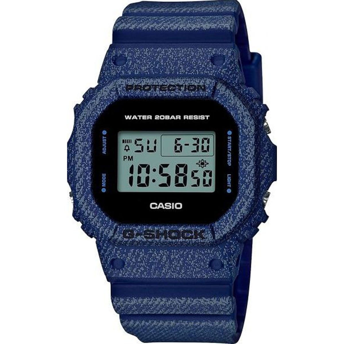 Компания CASIO представляет пополнение в коллекции G-SHOCK Denim's color. Новые ударопрочные и водонепроницаемые часы, созданные на базе классической модели DW-5600, имеют расцветку джинсового текстиля и обладают всеми характерными функциями:подсветкой, секундомером, таймером обратного отсчета. Джинсовая расцветка всегда была и будет актуальна.