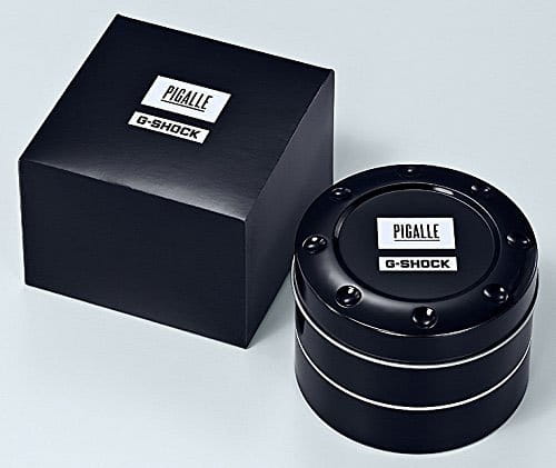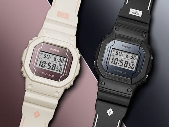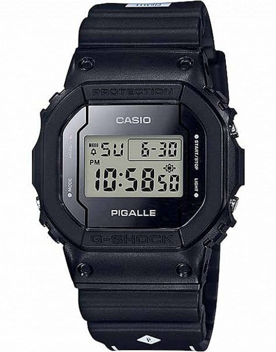 Свежая коллаборация G-SHOCK с культовым французским стрит-фешн брендом Pigalle в черном матовом корпусе DW-5600. Ремешок и циферблат модели украсили строгие линии, а зеркальная окантовка дисплея добавила узнаваемости среди иных моделей DW-5600, а нижнюю часть циферблата венчает логотип французского бренда.