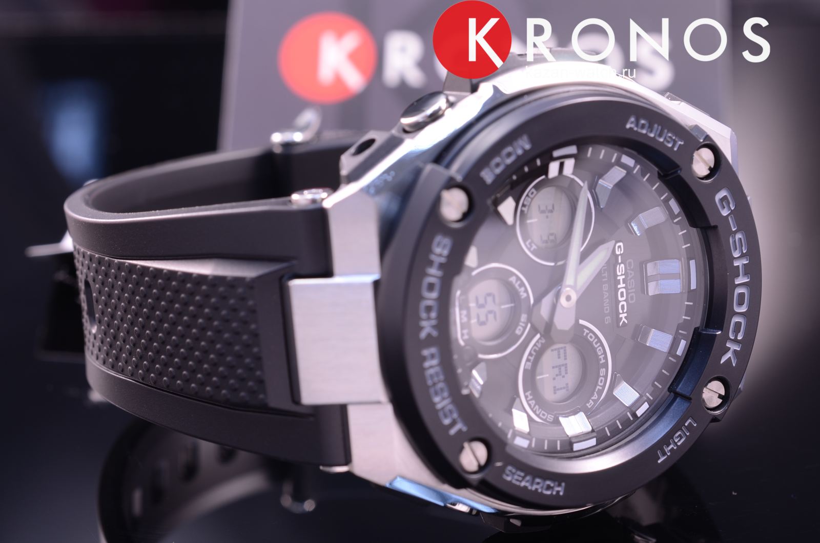 Спортивные ударопрочные наручные кварцевые мужские часы на солнечной батарее. Цифровой циферблат темного цвета. Корпус часов выполнен из нержавеющей стали и пластика черного цвета. Минеральное стекло устойчиво к царапинам. Часы надежно удерживаются на руке ремешком из высокопрочного полимерного пластика черного цвета. Водонепроницаемость 200М. Из дополнительных функций в часах присутствует: вечный календарь, секундомер, таймер обратного отсчета, второй часовой пояс, будильник (количество установок: 5), ежечасный сигнал, функция включения/отключения звука кнопок, автоподсветка, прием радиосигнала.