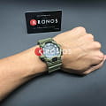 Аксессуар сочетает в себе современный дизайн вкупе с новейшими технологиями. Яркая светодиодная подсветкаСветодиодная подсветкаСветодиодная или LED-подсветка обеспечивает появление яркого холодного свечения за счёт LED-элементов - маленьких лампочек. Они потребляют минимальное количество энергии, чаще всего можно встретить 1 светодиод, в нижней части циферблата. оранжевого цвета. Также присутствует подсветка NeobriteПодсветка NeobriteИспользование светонакопительных составов на основе сульфида цинка или алюмината стронция, яркий свет можно наблюдать на протяжении 6-10 часов после «зарядки» часов около источника света.. Есть сплит-хронограф, записная книжка, мировое время. Долговечная батарейка служит 10 лет.