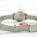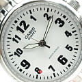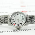 Гладкий, слегка отсвечивающий корпус серебристого цвета закреплен к элегантному браслету из нержавеющей стали. На круглом циферблате расположены крупные арабские цифры и стрелки, выгодно сочетающие в себе светло-зеленый и черный света. Простота дизайна, удобство и соблюдение правильных пропорций — вот главные преимущества данной модели. Кварцевый механизм. Срок службы батарейки составляет 3 года.