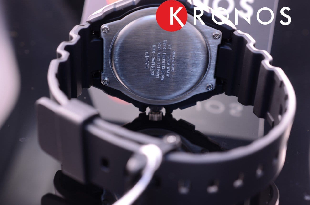 · Водонепроницаемость (10 Бар) (Идеально подходит для плавания с маской и трубкой: часы являются водонепроницаемыми до 10 Бар/на глубине до 100 метров. Значение метров не относится к глубине погружения, но относится к атмосферному давлению, используемого в процессе испытания на водонепроницаемость (ISO 2281). Фактическая глубина погружения не более 5 метров, нажатие кнопок под водой, равно как и открытие переводной коронки запрещено);
