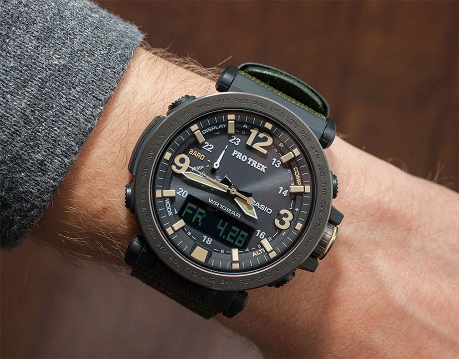 Это идеальный вариант для людей, неравнодушных к туристическим походам и дальним странствиям. Наручные часы в зелёном исполнении оснащены всем необходимым, чтобы путешествие прошло максимально легко: цифровой компас, барометр, высотомер с памятью данных, термометр -10°C /+60°C, будильник, UTCUTCВсемирное кординационное время, не имеющее привязки к географическому положению Гринвича, основывается на атомном отсчёте времени. Регулировка времени осуществляется более точно, чем устаревшее GMT.