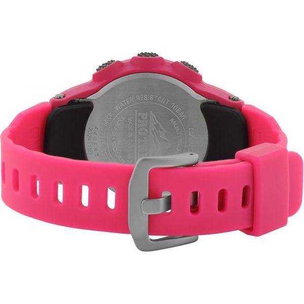 Японские мужские часы Casio Pro Trek PRW-3000-4BDR. Минеральное стеклоМинеральное стеклоМинеральное стекло представляет собой искусственно выращенный минерал кварца. Такое стекло отличается особой устойчивостью к повреждениям и царапинам. Уступает по некоторым качествам сапфировому стеклу. устойчивое к появлению царапин, обладающее высокой прозрачностью. Часы Pro Trek создана для любителей активного отдыха и сочетают в себе самые продвинутые технические характеристики в привлекательном внешнем виде. Корпус часовы выполенен из алюминия и пластика. Циферблат подсвечивается ярким светодиодомСветодиодная подсветкаСветодиодная или LED-подсветка обеспечивает появление яркого холодного свечения за счёт LED-элементов - маленьких лампочек. Они потребляют минимальное количество энергии, чаще всего можно встретить 1 светодиод, в нижней части циферблата., при недостаточном освещении во время поворота запястья в сторону лица подсветка включается автоматически. Питание от солнечной энергии, индикатор заряда батареи. Модуль часов рассчитан на работу при низких температурах. Функция автоматического сохранения энергии. Время работы аккумулятора без подзарядки - 7 месяцев, при включенной функции сохранения энергии - 23 месяца.   Мировое времяМировое время Полезное часовое усложнение, отображающее время в основных городах и известных областях по всему миру, оно связано с часовыми поясами, удобно для путешественников и бизнесменов. – 48 городов (29 часовых поясов).  Функция включения/отключения летнего времени. 12-ти и 24-х часовой формат времени. Коррекция текущего времени радиосигналом на территории почти всей Европы, США, Японии и Китая. Встроенный цифровой компас. Высотомер - встроенный датчик барометрического давления с возможностью вывода результатов в единицах высоты над уровнем моря (от -700 до 10000 метров). Барометр - измерение атмосферного давления от 260 до 1100 гПа (от 195 до 825 мм рт. ст.). Встроенный датчик температуры от -10° до +60°С с точностью 0,1°C. Время восхода и захода Солнца. СекундомерСекундомерСекундоме́р — прибор, способный измерять интервалы времени с точностью до долей секунды. с точностью измерения 1/100 секунды и измерением до 23 часов 59 минут 59,99 cек. ТаймерТаймерОтсчитывает секунды в обратном направлении в заданном интервале времени. обратного отсчета (диапазон времени 24 часа), автоматический календарь, 12/24 отображение времени. 5 будильниковБудильникБуди́льник — часы, в заданный момент времени подающие звуковой, световой и/или в редких случаях другой сигнал., один с функцией Snooze, ежечасный сигнал. Функция отключения/включения звука. Класс водозащиты: 100 метров, позволит плавать, нырять и заниматься другими водными видами спорта. Ремешок из полимерного материала на стандартной застежке.