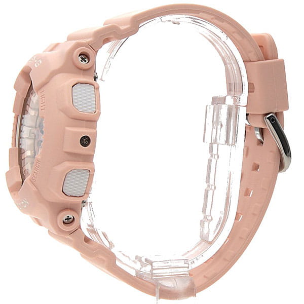 Японские женские часы с функцией мирового времениМировое время Полезное часовое усложнение, отображающее время в основных городах и известных областях по всему миру, оно связано с часовыми поясами, удобно для путешественников и бизнесменов. Casio Baby-G BA-130PM-4A, из коллекции Baby-G. Функции: автоматическая светодиодная подсветка, ударопрочный корпусУдаропрочный корпусМеханизм заключён в корпус, выполненный из современных материалов, устойчивых к ударам, механическим повреждениям и падению с высоты: инновационный пластик, карбон, нержавеющая сталь, титан., секундомерСекундомерСекундоме́р — прибор, способный измерять интервалы времени с точностью до долей секунды., таймерТаймерОтсчитывает секунды в обратном направлении в заданном интервале времени., 5 будильниковБудильникБуди́льник — часы, в заданный момент времени подающие звуковой, световой и/или в редких случаях другой сигнал., подсветка NeobriteПодсветка NeobriteИспользование светонакопительных составов на основе сульфида цинка или алюмината стронция, яркий свет можно наблюдать на протяжении 6-10 часов после «зарядки» часов около источника света., автоматический календарь, ежечасный сигнал, 12/24 - часовое отображение времени, вкл/выкл звука кнопок. Минеральное стекло, корпус из полимерного пластика, ремешок из полимерного материала, стандартная застежка, водонепроницаемость (10 бар). Габариты (Ш x В x Г) 46,3 х 43,4 х 15,8. Вес 45 г.