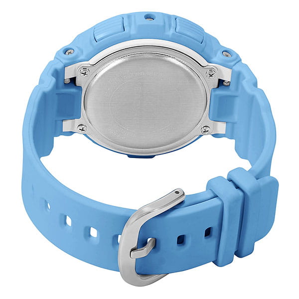 Женские противоударные японские наручные часы Casio Baby-G BGA-190BE-2A, кварцевый механизм с высокой точностью. Класс водозащиты: 100 метров, позволит плавать, нырять и заниматься другими водными видами спорта. Корпус часов изготовлен из пластика, голубого цвета.
