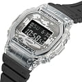 Новая модель часов с прозрачным корпусом создана на базе DW-5600. Противоударный корпус защищает механизм от ударов и вибрации. Электролюминесцентная подсветка освещает весь циферблат. После отпускания кнопки свечение продолжается еще некоторое время. Световая индикация сигнала. Цвет подсветки: сине-зеленый.