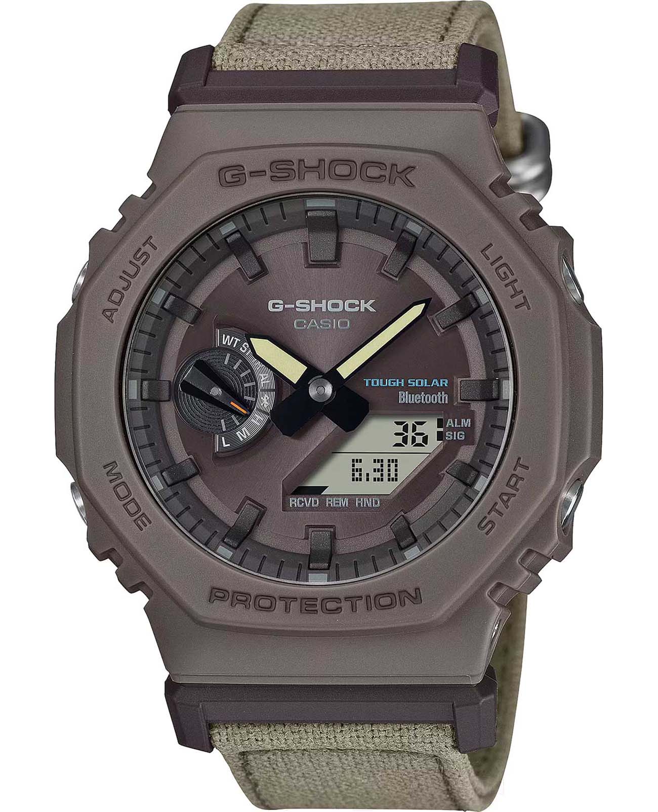 Японские мужские часы-хронографХронографФункция позволяет измерять отрезки времени с особой точностью: часы, минуты, секунды. Верным признаком хронографа является наличие на циферблате 3 дополнительных окошек-счётчиков. Casio G-Shock GA-B2100CT-5ADR (GA-B2100CT-5A). Корпус выполнен из биопластика, который изготавливается из возобновляемых органических ресурсов. Ремешок выполнен из экологически чистого хлопка TrueCotton и окрашен красками FOOD TEXTILE, которые перерабатывают пищевые отходы для создания натуральных красителей. Для данной модели часов краску для ремешка изготовили из кофе. Питание от солнечной энергии Tough Solar - солнечные батарейки большой мощности. Индикатор заряда батареи. Функция автоматического сохранения энергии. Время работы аккумулятора без подзарядки - 7 месяцев, при включенной функции сохранения энергии - 18 месяцев. Структура Carbon Core Guard. Противоударный пластиковый корпус с карбоновыми волокнами более прочный и, в то же время, более легкий. Этот же материал защищает внутренний модуль от повреждений и деформаций при ударах. Двойная подcветка: циферблат и ЖК-дисплеи подсвечиваются светодиодом, благодаря наличию функции задержки, после отпускания кнопки освещение горит еще несколько секунд. Настраиваемое послесвечение 1,5 или 3сек. Цвет подсветки: белый. Необритовое светонакопительное покрытие обеспечивает длительное послесвечение в темноте даже после кратковременного нахождения на свету. Минеральное стеклоМинеральное стеклоМинеральное стекло представляет собой искусственно выращенный минерал кварца. Такое стекло отличается особой устойчивостью к повреждениям и царапинам. Уступает по некоторым качествам сапфировому стеклу. устойчивое к появлению царапин, обладающее высокой прозрачностью.